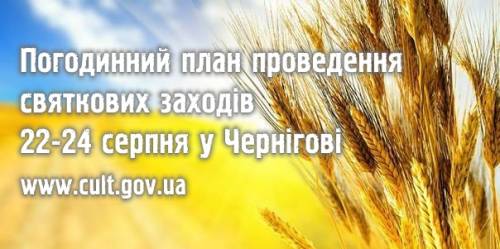 Погодинний план проведення святкових заходів 22-24 серпня у ЧерніговіУкраина, Чернигов и область | Местные новости | 19-08-2015 15:50 | Управління культури і туризму :. Чернігівщина > Вести от этого источника