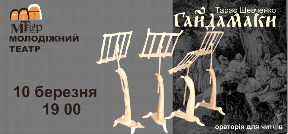 10 березня о 19:00 у Чернігівському Молодіжному театрі відбудеться мистецький проект «Читання п'єси» (ораторія для читців) ГАЙДАМАКИ Тараса Шевченка. |